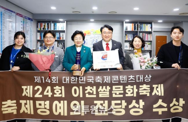 (원투원뉴스) 대한민국 대표 농경문화 축제인 ‘이천쌀문화축제’가 24일 서울 전쟁기념관에서 열린 ‘2026 제14회 대한민국축제콘텐츠대상’ 시상식에서 ‘축제 명예의 전당상’을 수상했다.