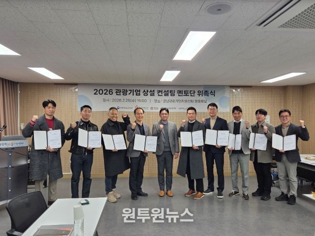 (원투원뉴스) 경상남도는 경남관광재단 관광기업지원센터 주관으로 25일 경남관광기업지원센터에서 ‘2026년 관광기업 상설 컨설팅 멘토단 위촉식’을 개최하고, 도내 관광기업과 예비창업자를 위한 상설 컨설팅 프로그램을 본격 운영한다고 밝혔다.