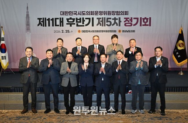 (원투원뉴스) 경상남도의회 운영위원회(위원장 정규헌)는 2월 25일 경상남도 통영시 스탠포드호텔에서 ‘대한민국시도의회운영위원장협의회 제11대 후반기 제5차 정기회’를 개최했다고 밝혔다. 이번 정기회는 경상남도의회 주관으로 열렸으며, 전국 시도의회 운영위원장이 참석해 지방의회 공동 현안을 논의했다.