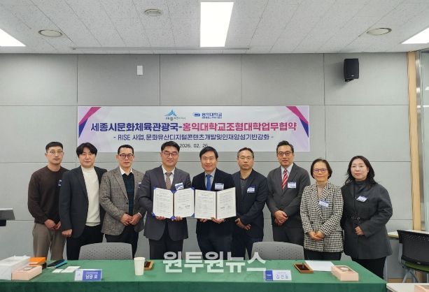 (원투원뉴스) 세종특별자치시가 홍익대학교(세종캠)와 손잡고 지역 문화유산의 디지털 활용 기반 확대를 위한 공동 협력체계 구축에 나선다.