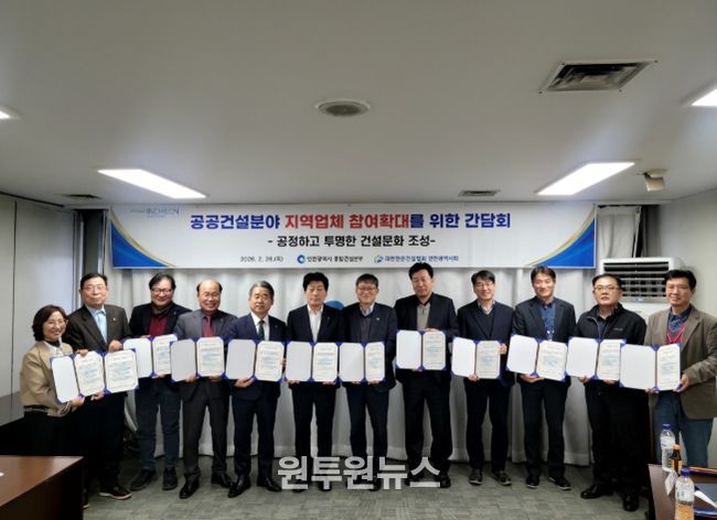 (원투원뉴스) 인천광역시 종합건설본부는 대한전문건설협회 인천광역시회와 함께 공공건설 분야 지역업체 참여 확대 및 지역건설산업 활성화를 위한 간담회를 개최했다고 밝혔다.