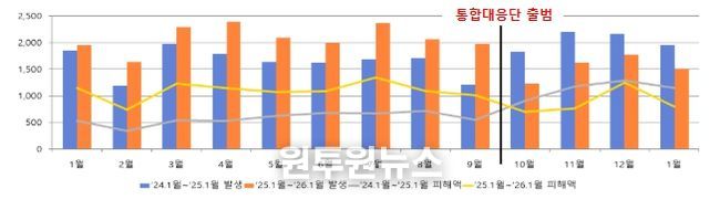 그 결과, ’25년 9월까지 전년 동기간 대비 증가세를 보이던 보이스피싱은 ’25년 10월 이후 ’26년 1월까지 4개월 연속 발생 건수와 피해액 모두 감소했다.