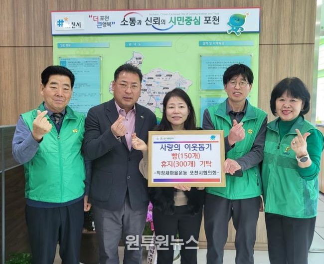 (원투원뉴스) 포천시 가산면 행정복지센터는 지난 26일 직장새마을운동 포천시협의회가 지역 취약계층 지원을 위해 빵 150개와 두루마리 휴지 300개를 기탁했다고 밝혔다.