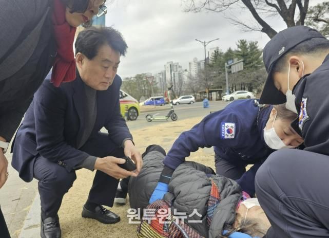 (원투원뉴스) 하은호 군포시장이 길에 쓰러진 할머니를 발견하고 신속한 신고와 응급처치를 통해 무사귀환을 도와 화제다