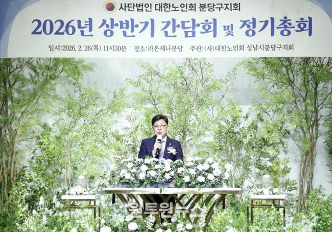 (원투원뉴스) 성남시의회는 26일 라온제나 분당에서 열린‘2026년 대한노인회 분당구지회 상반기 간담회 및 정기총회’에 참석해 어르신 복지 증진과 노인회 발전을 위한 소통의 시간을 가졌다.