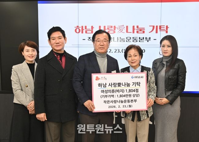 (원투원뉴스) 하남시는 지난 23일, 작은사랑나눔운동본부가 취약계층 지원을 위한 여성의류 1,804점(기부가액 1,804만원)을 ‘하남 사랑愛나눔’ 성품으로 기탁했다고 밝혔다.