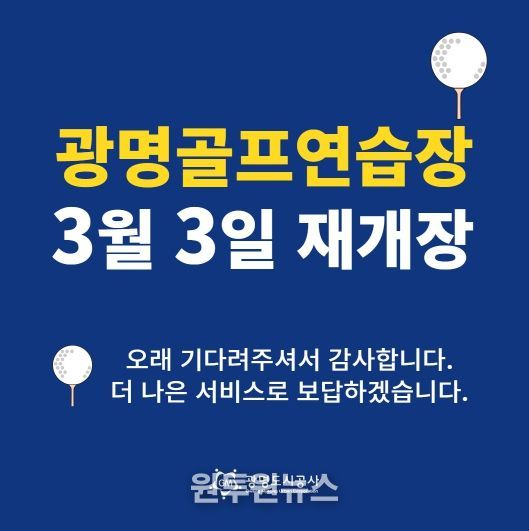 (원투원뉴스) 광명도시공사는 약 3개월간의 개보수공사를 마치고 오는 3월 3일 광명골프연습장을 재개장 한다고 밝혔다.