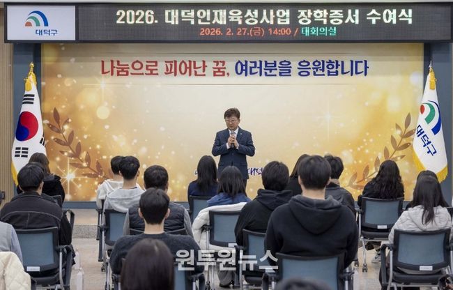 대덕구 관계자는 “대덕인재육성사업은 단순한 장학금 지원을 넘어 지역사회가 함께 미래 인재를 키워가는 뜻깊은 사업”이라며 “따뜻한 나눔으로 함께해 주신 후원 기업에 깊이 감사드리며, 학생들이 자신의 꿈을 향해 힘차게 나아가는 든든한 디딤돌이 되길 바란다”고 말했다.