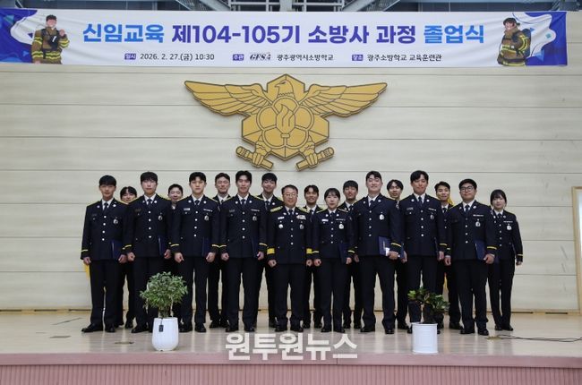(원투원뉴스) 광주광역시 소방학교는 27일 교육훈련관에서 제104·105기 신임교육 소방사 과정 졸업식을 개최했다.