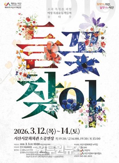 (원투원뉴스) 충남 서산시는 오는 3월 12일부터 14일까지 문화회관 소공연장에서 3.1절기념 특별기획 음악극 ‘들꽃찾아’를 개최한다고 밝혔다.