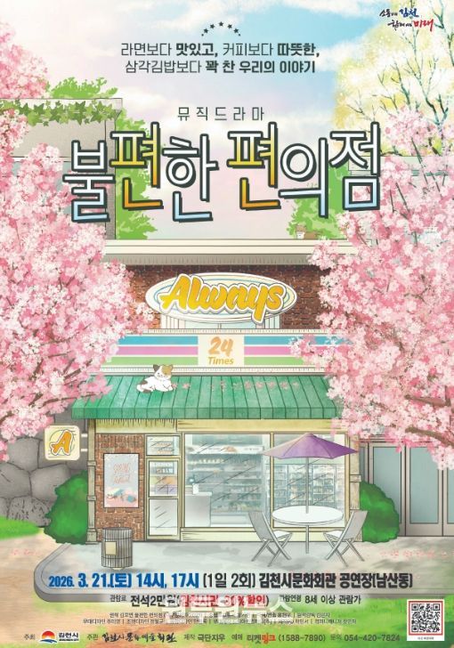 (원투원뉴스) 김천시 문화예술회관(관장 김해문)은 시민들에게 공감과 위로를 전하는 연극 '불편한 편의점'을 3월 21일(토) 문화회관(남산동)에서 개최한다.