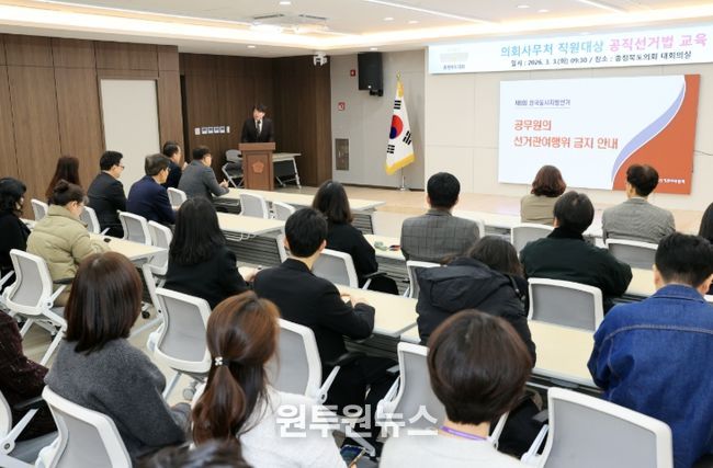 (원투원뉴스) 충북도의회는 3일 도의회 대회의실에서 사무처 직원을 대상으로 지방선거 대비 공직선거법 교육을 실시했다.