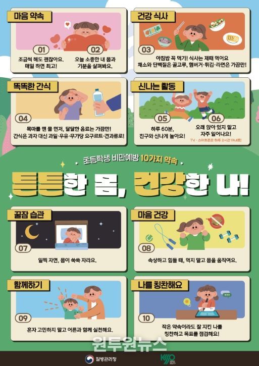(원투원뉴스) 질병관리청은 세계 비만의 날을 맞아 대한비만학회(소아청소년위원회)와 공동으로 ‘소아청소년 비만 예방관리수칙’을 제정·배포하고, 비만 예방관리 영상 교육자료 4종을 제작·보급한다.
