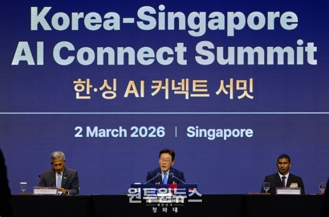 (원투원뉴스) 싱가포르를 국빈 방문한 이재명 대통령은 2일(현지시간) 오후 '한·싱 AI 커넥트 서밋'에 참석해 "대한민국과 싱가포르의 동반성장으로 AI 산업의 흐름을 선도하는 'AI 대항해 시대'를 열어갈 것"이라고 밝혔다.
