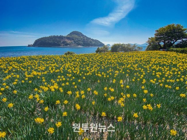 ▲ 공곶이(거제) = 푸른 바다를 배경으로 수선화와 설유화가 어우러지는 해안 꽃길 명소다. 노란 꽃물결과 푸른 바다가 대비를 이루며 한 폭의 그림 같은 풍경을 완성한다. 매년 열리는 수선화 축제는 거제 봄 여행의 백미로 꼽힌다.