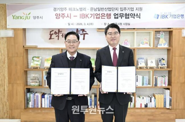 (원투원뉴스) 양주시가 지난 4일 IBK기업은행과 경기양주테크노밸리·은남일반산업단지 입주 예정 기업을 위한 금융지원 업무협약(MOU)을 체결했다.
