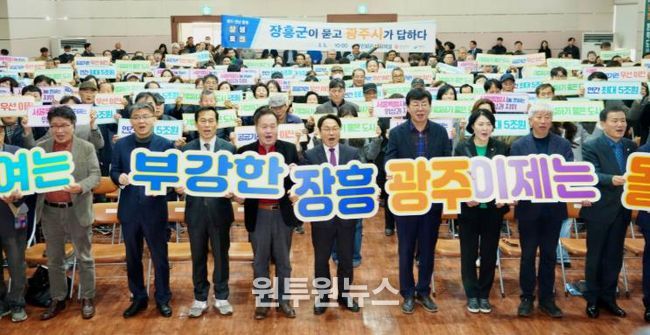 (원투원뉴스) 광주광역시는 5일 장흥군민회관 대회의실에서 ‘광주전남 통합 장흥군 상생토크’를 열고, 광주전남 통합의 필요성과 장흥 발전 방안에 대해 군민들과 소통했다.