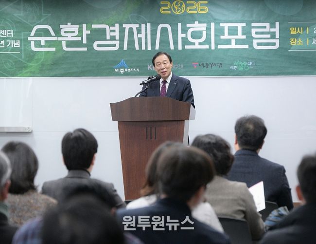 (원투원뉴스) 세종특별자치시가 6일 시청에서 세종새활용센터 개소 1주년을 기념하는 ‘2026 순환경제사회 포럼’을 개최했다.