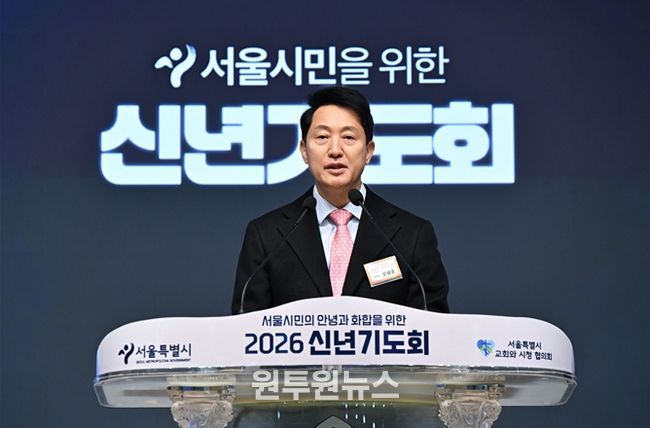 (원투원뉴스) 오세훈 서울시장은 9일 오전 7시 20분, 신길교회(영등포구 영등포로67가길 9)에서 서울특별시교회와시청협의회 주최로 열린 ‘2026 신년기도회’에 참석해 서울 시민의 안녕과 화합을 위해 기도했다.