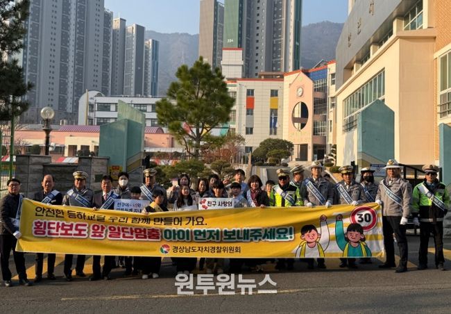 (원투원뉴스) 경상남도자치경찰위원회는 10일 오전 창원 안민초등학교 정문에서 신학기 어린이 안전을 위한 합동 캠페인을 실시했다.