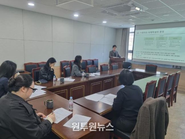 연수에서는 학교폭력 사안 처리 절차와 관련 법규를 중심으로 학교폭력대책심의위원회 운영 기준을 안내하고, 실제 상담 과정에서 발생할 수 있는 다양한 사례를 공유했다.