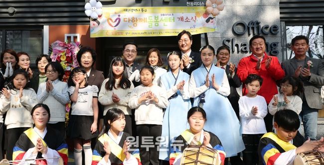 (원투원뉴스) 대전 동구는 10일 천동 리더스시티5단지 아파트 주민공동시설에 조성된 다함께돌봄센터 11호점 ‘천동 리더스5’ 개소식을 개최했다고 밝혔다.