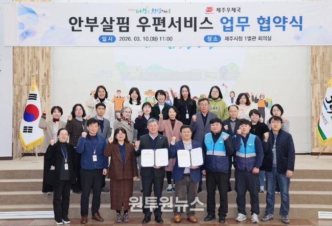 (원투원뉴스) 제주시는 3월 10일 시청 1별관 회의실에서 제주우체국(국장 오달규)과 ‘안부살핌 우편서비스’ 업무 협약을 체결했다.