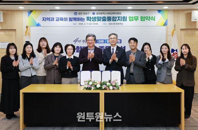 (원투원뉴스) 대전 유성구는 11일 유성구청 중회의실에서 대전서부교육지원청과 교육 취약 학생의 건강한 성장을 지원하기 위한 업무 협약을 체결했다.