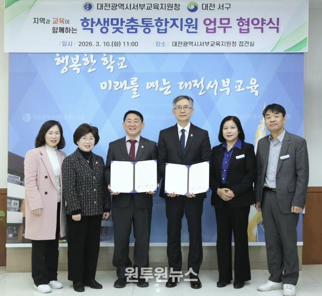 (원투원뉴스) 대전 서구는 서부교육지원청과 사각지대 없는 촘촘한 지역 밀착형 학생 지원망 구축을 위한 업무협약을 체결했다고 11일 밝혔다.