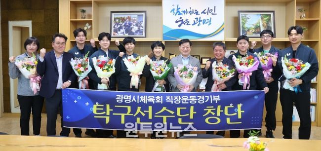 박승원 광명시장은 12일 오후 시장 집무실에서 탁구선수단과 광명시체육회·광명시탁구협회 관계자를 만나 창단을 축하하고 격려했다.