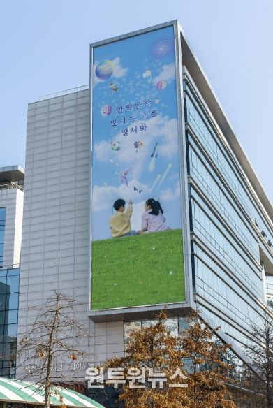(원투원뉴스) 세종특별자치시교육청은 청사 외벽에 ‘반짝반짝 빛나는 너를 펼쳐봐’ 문구의 현수막을 게시하고, 학생의 꿈과 성장을 응원하는 메시지를 시민들과 공유하고 있다.