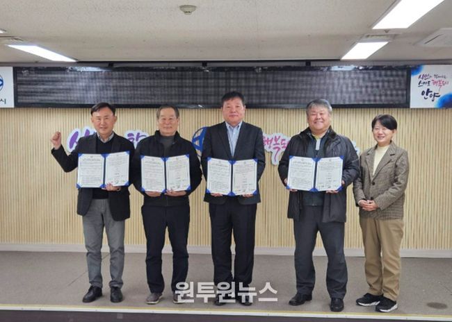 (원투원뉴스) 안양시는 13일 상록지구 재개발사업의 사업시행자(조합), 건설사업관리단(감리단), 시공사(건설사)와 ‘지역경제 활성화를 위한 업무협약’을 체결했다.