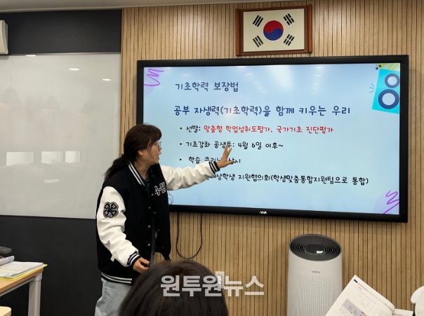 이를 통해 모든 학생의 기초학력을 보장하는 교육 지원 체계를 강화하기로 했다. 이어 진행된 ‘학교 소통 전용 플랫폼’ 활용 교육에서는 보호자와의 원활한 소통과 가정통신문 등 주요 학사 정보의 신속한 전달 방법을 안내하며 디지털 기반 학사 운영 역량을 높였다.