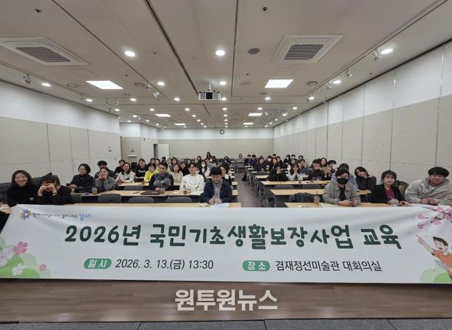 (원투원뉴스) 서울 강서구는 지난 13일 겸재정선미술관에서 신규 임용 사회복지직 공무원과 주민센터 복지 담당자 등 70명을 대상으로 ‘2026년 국민기초생활보장사업’ 교육을 실시했다.