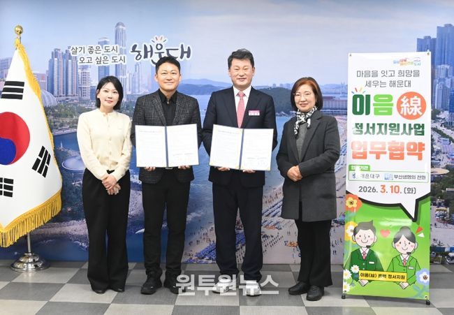 (원투원뉴스) 해운대구는 3월 10일 부산생명의전화(원장 홍재봉)와 고독사 위험군 및 사회적 고립가구의 정서적 지원을 위한'이음(線) 콜백 정서 지원사업' 업무협약을 체결했다.