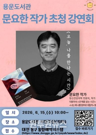 이번 강연은 오는 4월 15일 오전 10시 용운도서관 시청각실에서 열리며, ‘오늘, 나를 만나는 시간’을 주제로 감정의 본질과 기능, 회복 방법 등을 다룰 예정이다.