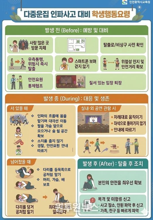시교육청 관계자는 "학생들의 안전이 무엇보다 최우선"이라며 "경찰청 등 유관기관과 협력해 대규모 인파 밀집 등 다양한 위기 상황에 선제적으로 대응하고 사고 예방에 최선을 다하겠다"고 말했다.