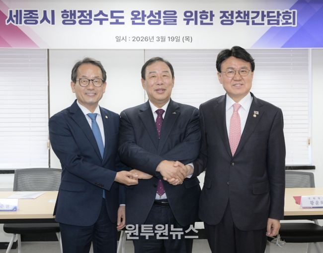 최민호 시장은 “우리 세 사람 모두 당적은 다르지만 세종을 걱정하는 마음은 하나”라며 “행정수도 완성을 위한 세종시의 노력에 강준현·황운하 의원의 입법 역량을 더해 세종의 밝은 미래를 함께 열어가자”고 당부했다.