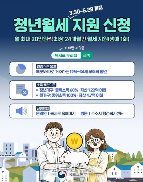 (원투원뉴스) 청년월세 지원 신청(3.30~5.29까지)