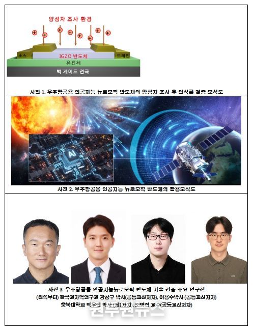 최근 우주 탐사 기술의 급격한 발전에 따라, 인공지능(AI)과 빅데이터 분석을 처리할 반도체 소자가 우주의 가혹한 방사선 환경을 견딜 수 있도록 ‘내 방사선’ 특성을 확보하는 것이 핵심 과제로 떠오르고 있다. 이에 연구팀은 차세대 반도체 물질인 인듐-갈륨-아연 산화물 기반의 시냅틱 트랜지스터를 제작하여 우주 환경에서의 인공지능 반도체 활용 가능성을 검증했다.