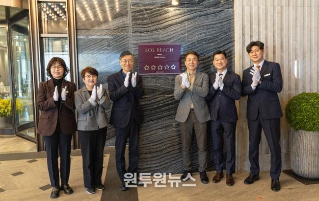 (원투원뉴스) 남해군과 소노인터내셔널은 지난 19일 ‘쏠비치 남해’에서 관광호텔 최고 등급인 5성 인증을 기념하는 현판식을 개최했다.