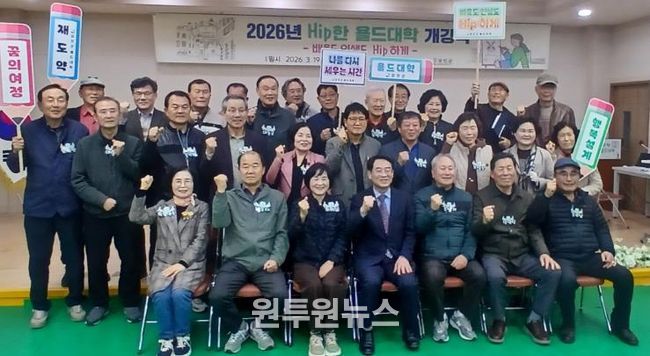 (원투원뉴스) 강진군이 지난 19일 청소년문화의집 강당에서 ‘2026년 힙(Hip)한 욜드대학’ 개강식을 열고, 수강생 31명과 함께 본격적인 교육과정 운영에 들어갔다.