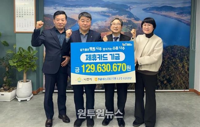 (원투원뉴스) 전남 나주시는 지난 17일 NH농협은행 나주시지부와 함께 2025년도 제휴카드 적립기금 1억 2963만 원 전달식을 개최했다고 밝혔다.