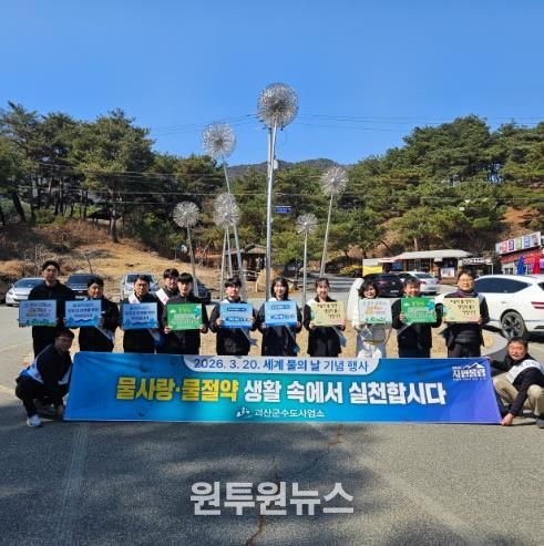 (원투원뉴스) 충북 괴산군 수도사업소는 ‘세계 물의 날(3월 22일)’을 맞아 20일 괴산시외버스터미널과 산막이옛길 일원에서 수도사업소 직원들과 수자원공사 등 30여 명이 ‘물 아껴 쓰기’ 캠페인을 펼쳤다고 밝혔다.