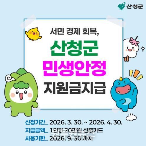 이번 지원금은 '산청군 민생안정지원금 지원 조례'에 근거해 추진되며, 기준일 2025년 12월 31일부터 신청일까지 산청군에 계속해서 주민등록을 두고 있는 군민 대상이다.