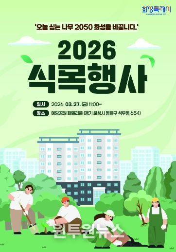 (원투원뉴스) 화성특례시가 제81회 식목일을 기념해 3월 27일 오전 11시 예당공원 동탄패밀리풀에서 ‘2026년 식목행사’를 연다. 이번 행사는 ‘오늘 심는 나무 2050 화성을 바꿉니다’를 주제로 탄소중립 녹색성장 도시 기반을 다지기 위해 마련됐다.