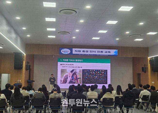 (원투원뉴스) 거제시는 지난 19일 시청 대회의실에서 소속 공무원 및 직원 100명을 대상으로 환경 인식 전환 교육을 실시했다.