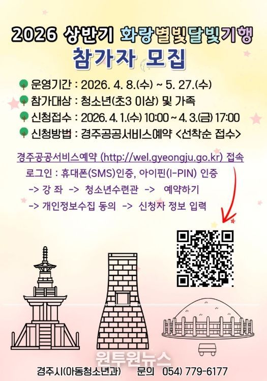 김유경 경주시 아동청소년과장은 “청소년들이 지역의 문화유산을 직접 보고 느끼며 자연스럽게 역사를 배우는 뜻깊은 시간이 되길 바란다”며“앞으로도 가족이 함께 참여할 수 있는 다양한 체험 프로그램을 지속적으로 운영하겠다”고 말했다.