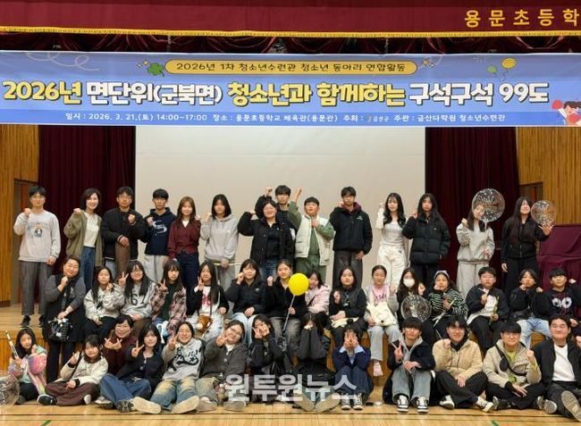 (원투원뉴스) 금산군 청소년수련관은 금산군 면 지역 청소년들의 문화 향유 기회를 확대하기 위해 지난 21일 군북면 용문초에서 구석구석 99도 행사를 개최했다.