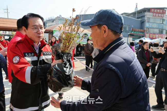(원투원뉴스) 충북 괴산군은 23일 제81회 식목일을 앞두고 산림보호에 대한 군민들의 의식을 향상하기 위해 나무 나누어주기 행사를 개최했다.